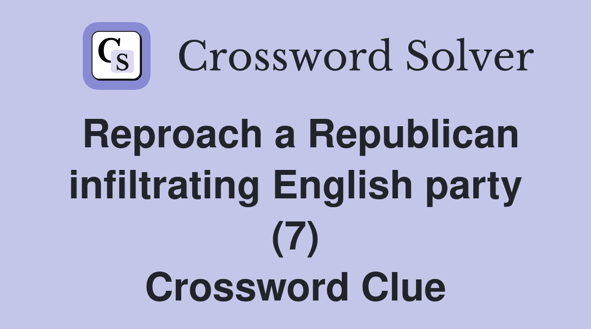 Reproach a Republican infiltrating English party (7) Crossword Clue