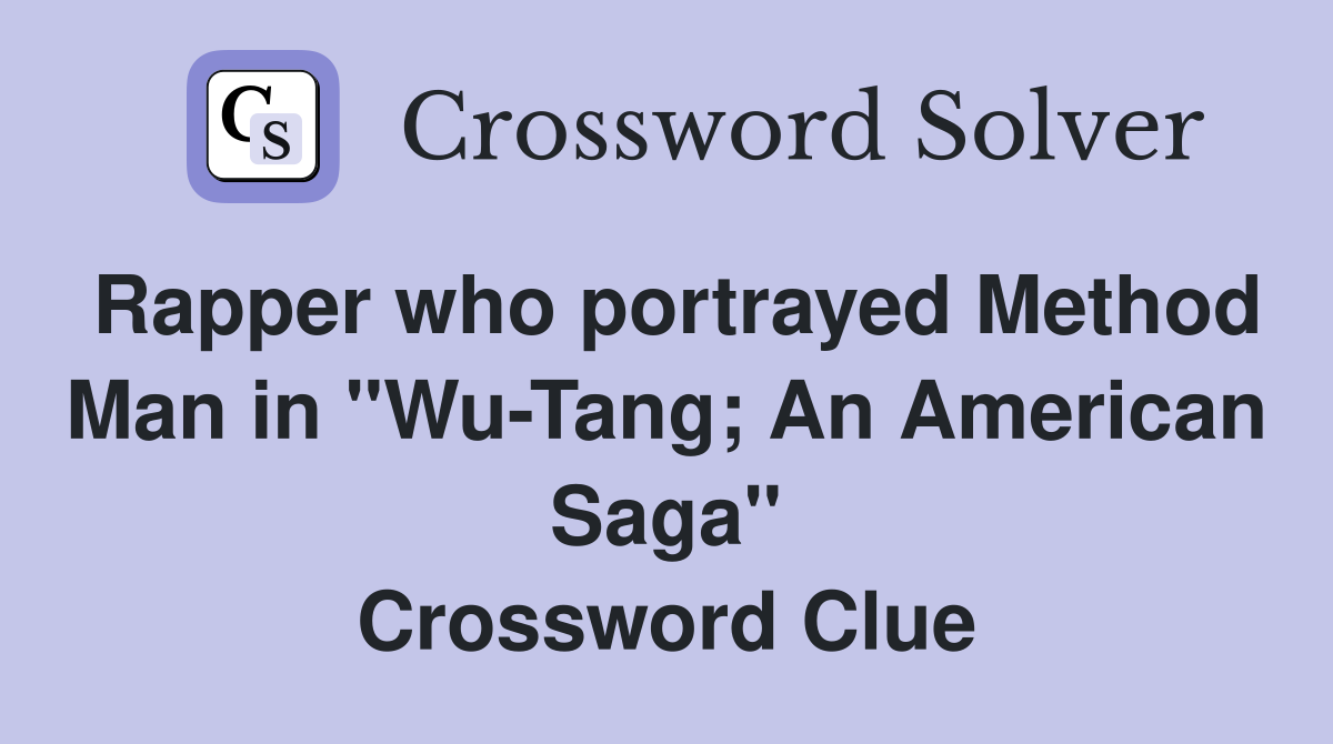 Rapper who portrayed Method Man in quot Wu Tang An American Saga