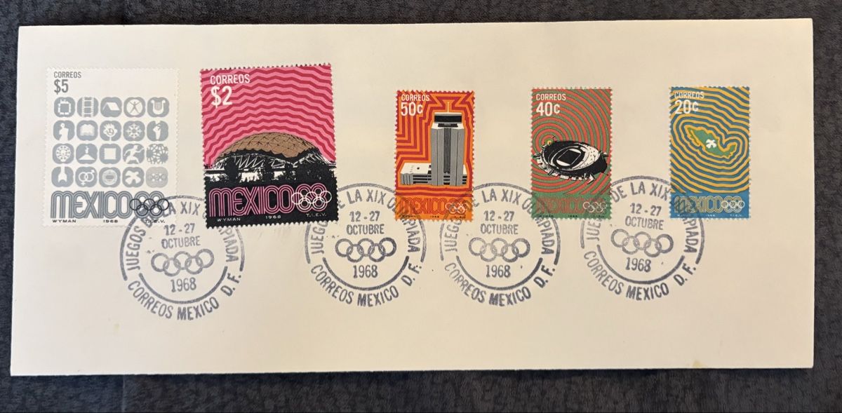 Timbre rare Mexique 1968 JO sur enveloppe Superbe (D #39 occasion) à
