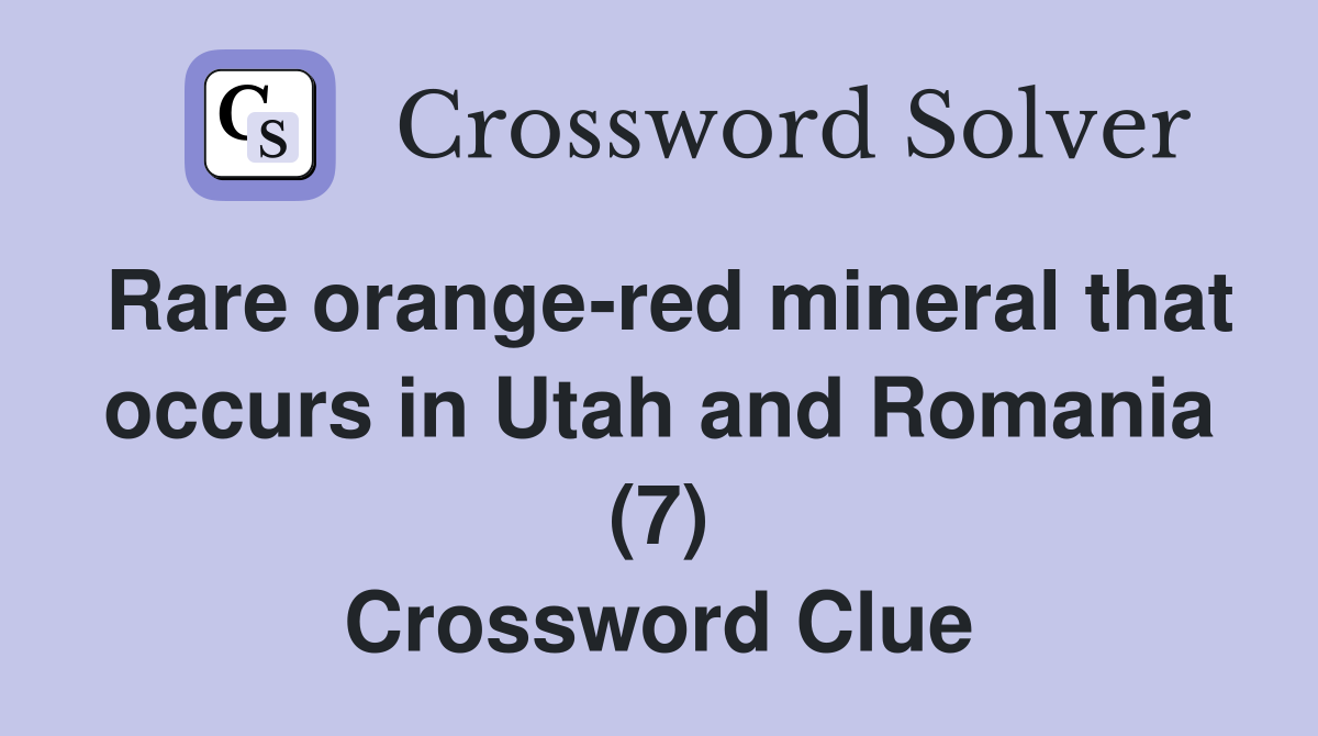 Rare orange red mineral that occurs in Utah and Romania (7) Crossword