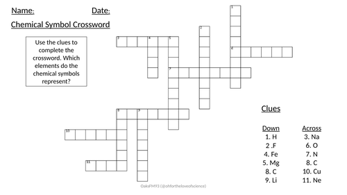Chemical Symbol Crossword (with answers) Teaching Resources