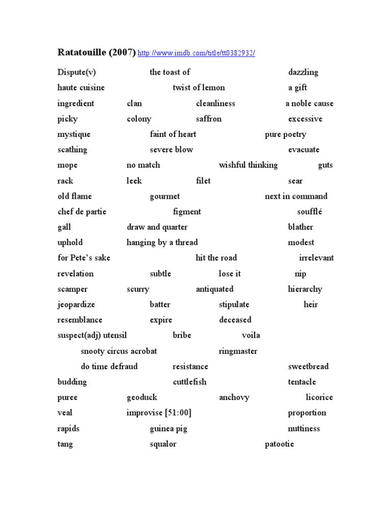 Here are some of the images for Ratatouille Worksheet Answers that we found in our website database.