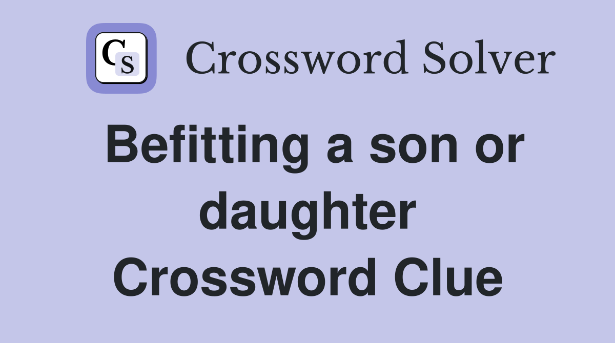 Befitting a son or daughter Crossword Clue Answers Crossword Solver