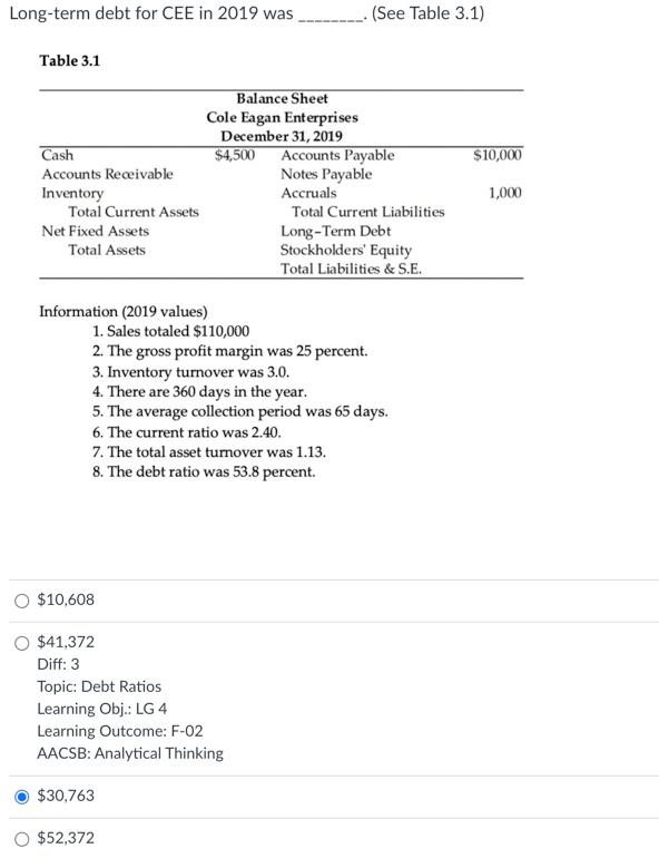 Solved Long term debt for CEE in 2019 was (See Table 3 1) Chegg com