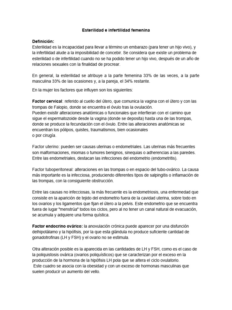 Esterilidad e Infertilidad Femenina PDF Fertilización en vitro Útero