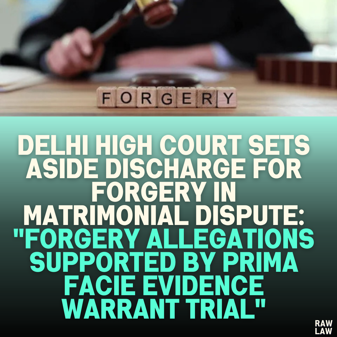 Delhi High Court Sets Aside Discharge for Forgery in Matrimonial