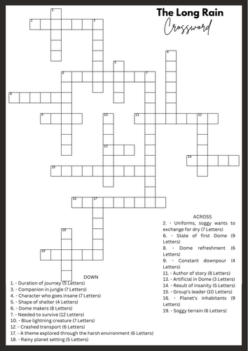 The Long Rain by Ray Bradbury Crossword Teaching Resources