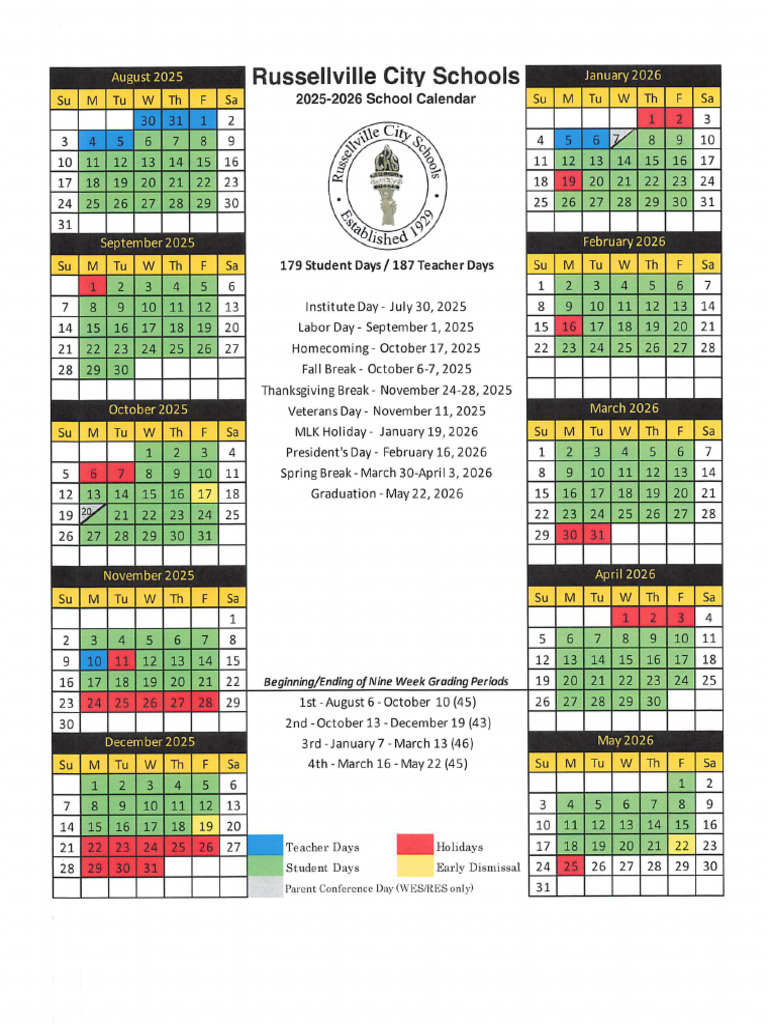 2025 2026 RCS School Calendar Huntsville Elementary