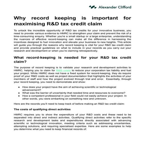 R D Tax Credits: HMRC Compliance Guide SPRK Capital