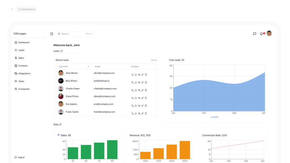 SAAS CRM frontend React template