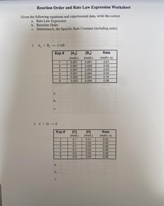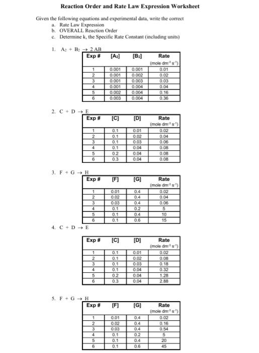 Solved Reaction Order and Rate Law Expression Worksheet en Chegg com