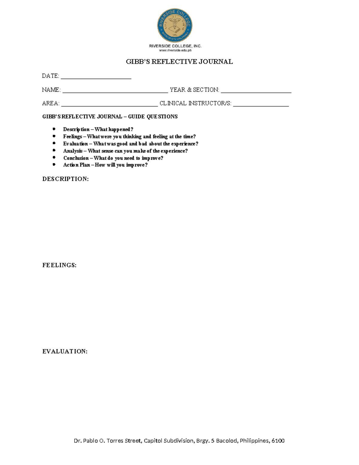 Gibbs Journal NONE GIBB S REFLECTIVE JOURNAL DATE