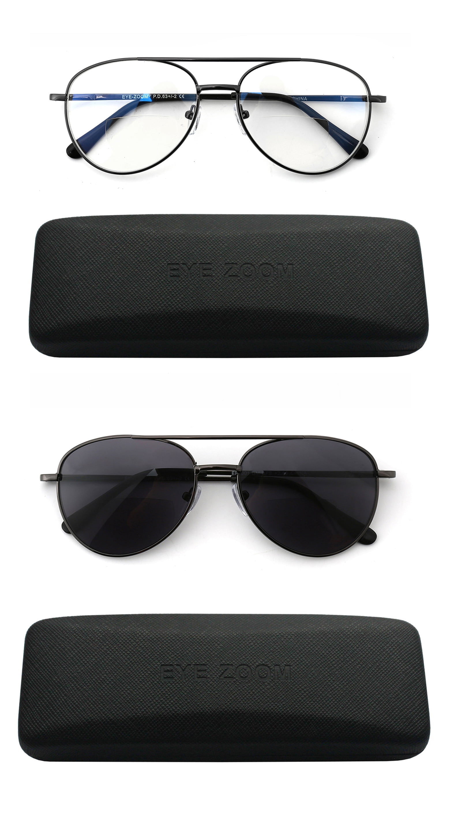 EYE ZOOM Aviator Style Blue Light Blocking Bifocal Reading Glasses and