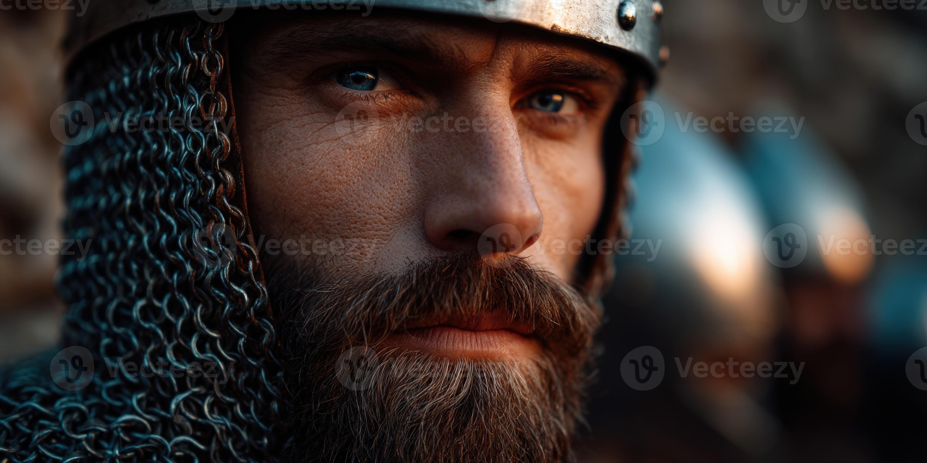 Knight in chainmail readies for battle reenactment 65867331 Stock Photo