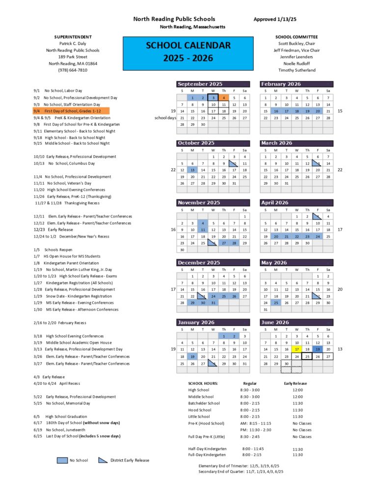 North Reading Public Schools Calendar 2025 Schoolcalendars net