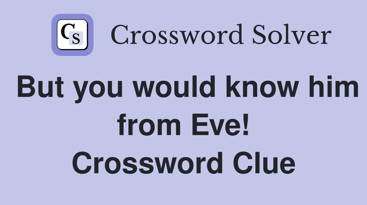 But you would know him from Eve Crossword Clue Answers Crossword