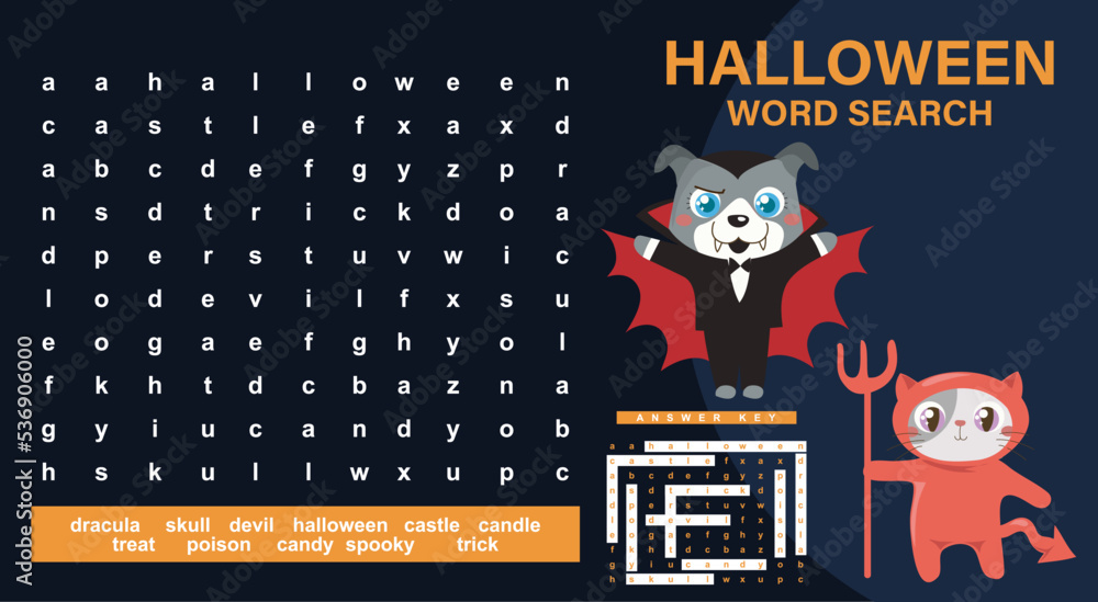 Vektor Halloween word search worksheet crossword worksheet Halloween