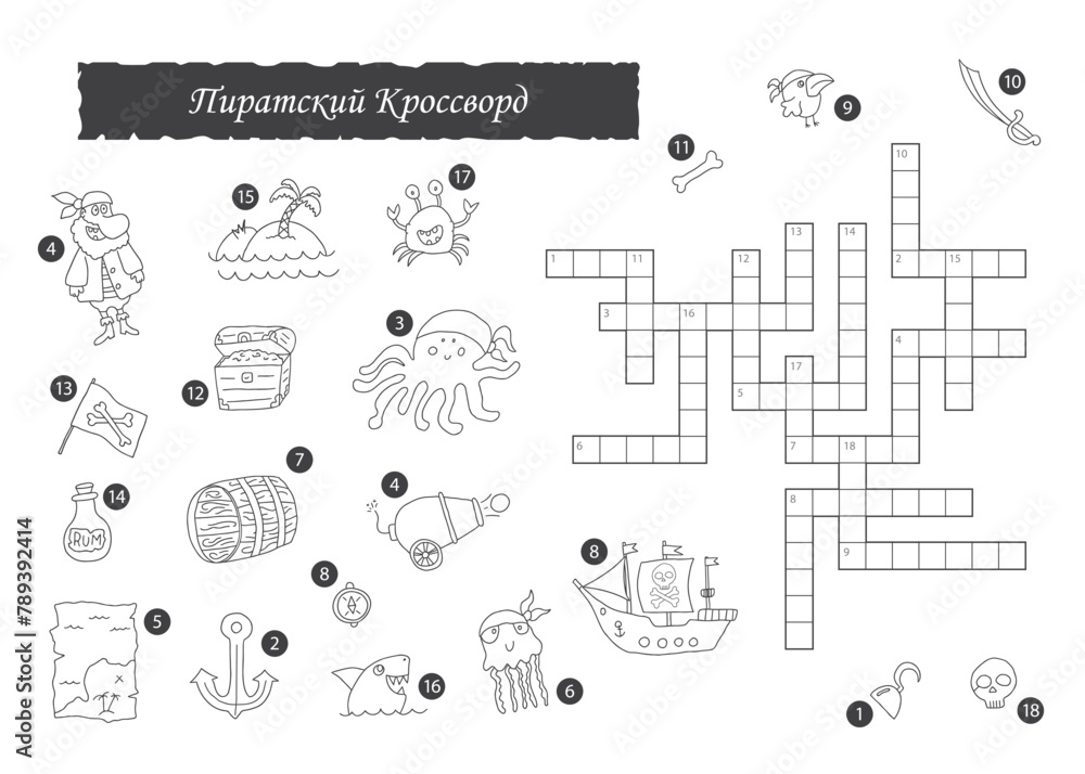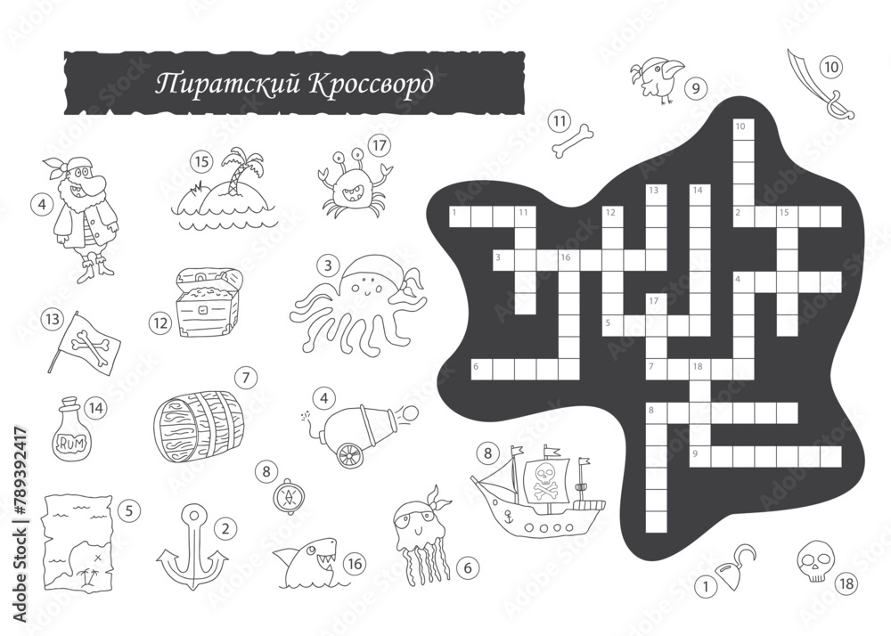 Crossword puzzle game for children in English Cute cartoon Pirate
