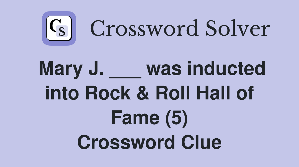 Mary J was inducted into Rock Roll Hall of Fame (5) Crossword