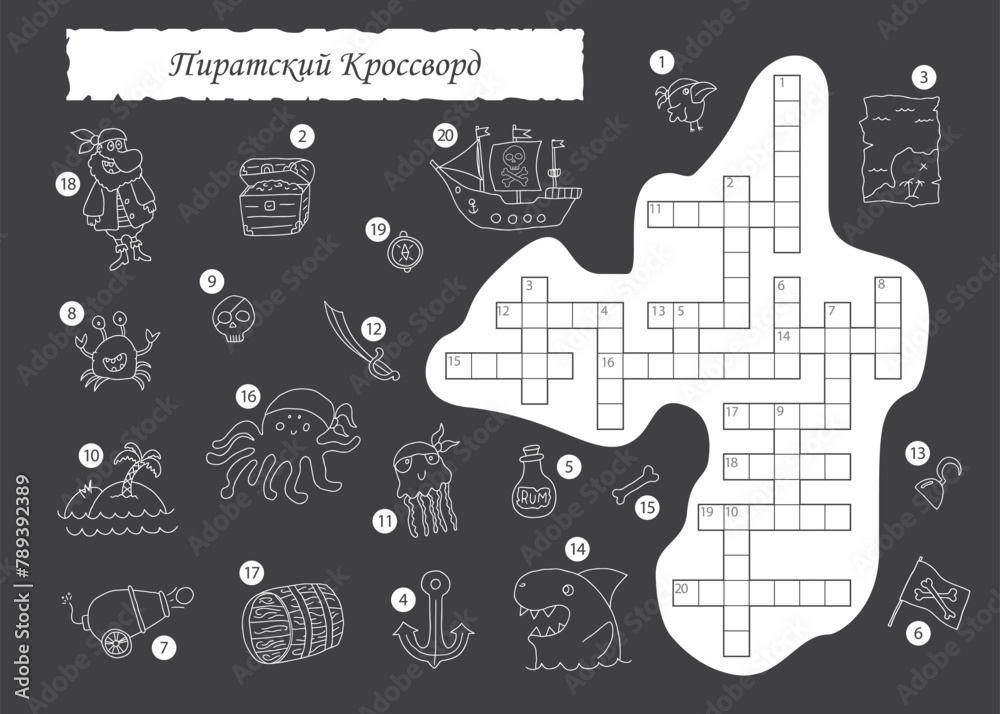 Crossword puzzle game for children in English Cute cartoon Pirate