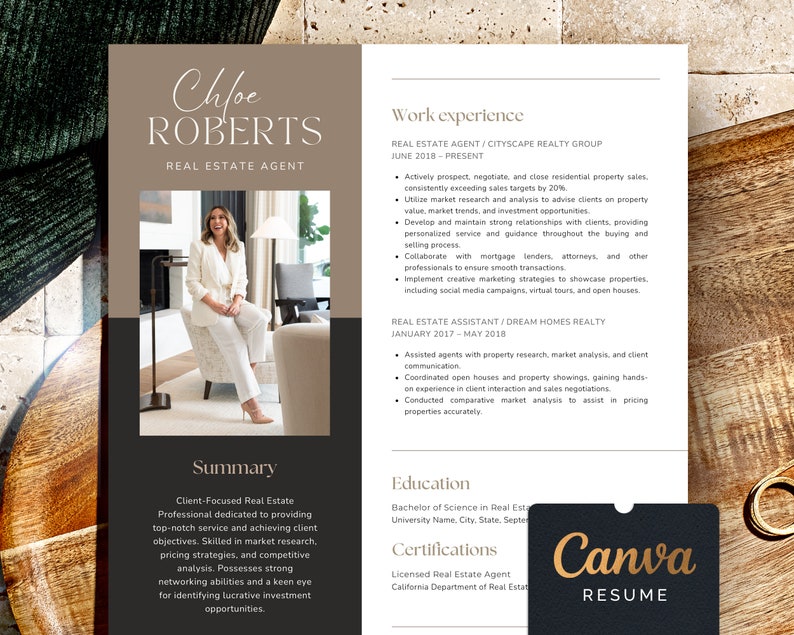 Real Estate Agent Resume Template for Canva Professional CV Template