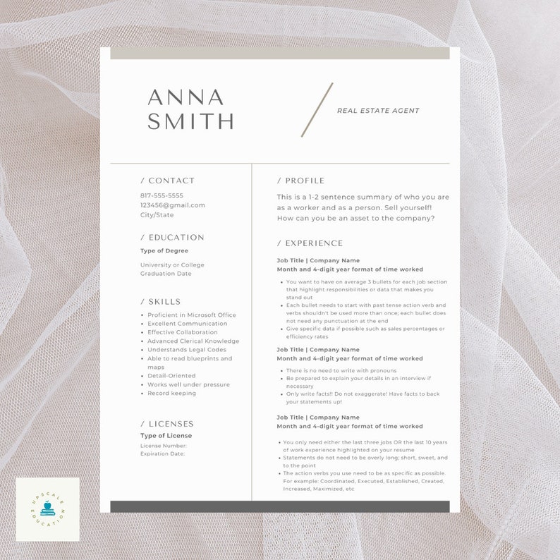 Real Estate Agent Resume Template Etsy