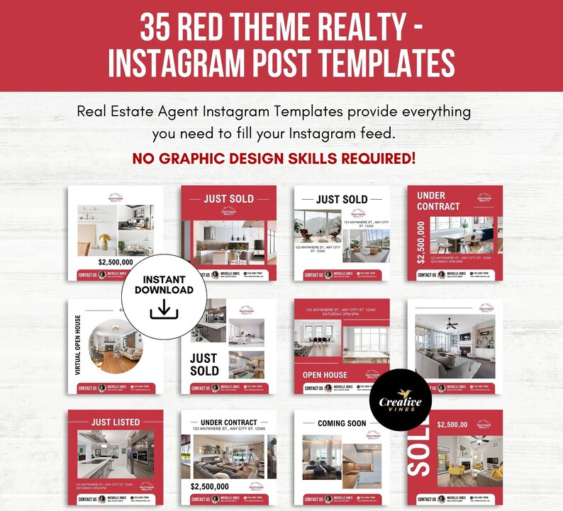 Red Theme Realty Instagram Post Template Real Estate Agent Template