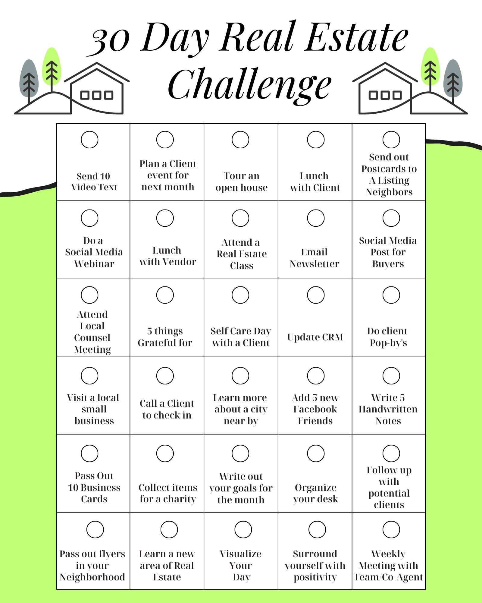 30 Day Real Estate Challenge Sheet Etsy