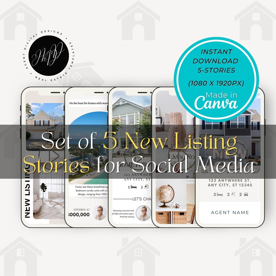 Real Estate Instagram Story Templates for New Listings: Editable Canva