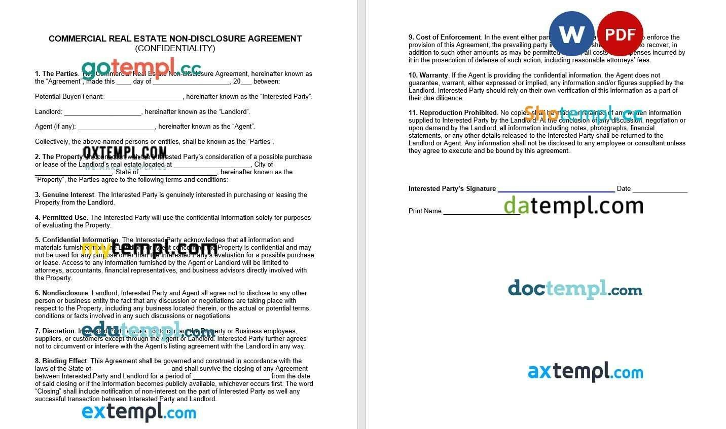 Free Commercial Real Estate Non Disclosure Agreement (NDA) PDF Word