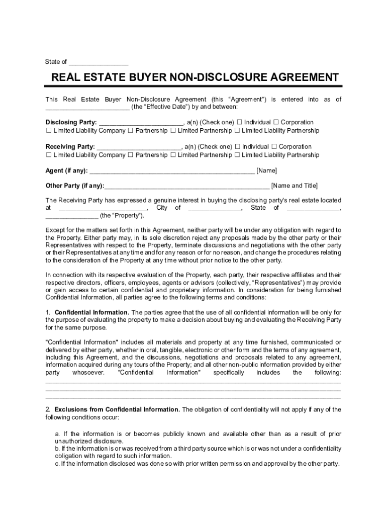 Free Real Estate Buyer Non Disclosure Agreement Template PDF Word