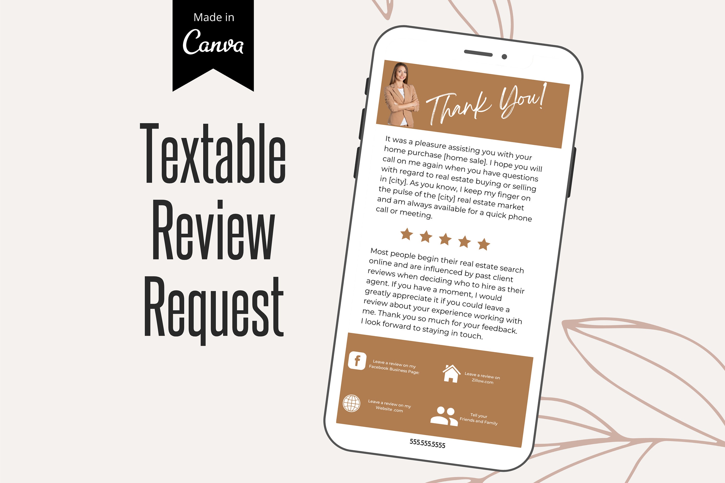 Real Estate Review Request Template: Textable Client Flyer (canva