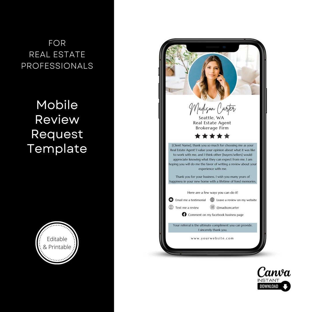 Real Estate Textable Review Request Real Estate Review Etsy
