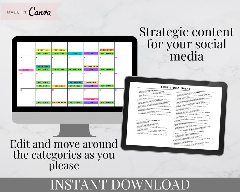 Real Estate Social Media Content Calendar for 2021 Real Etsy