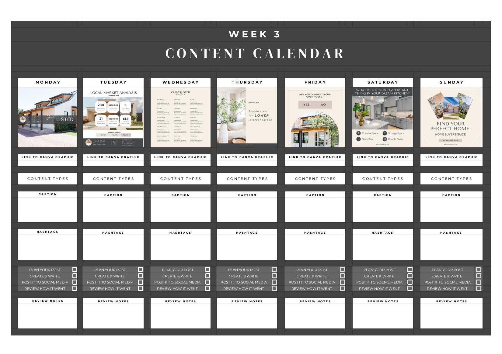 Real Estate Social Media Content Calendar 50 FREE Canva Templates