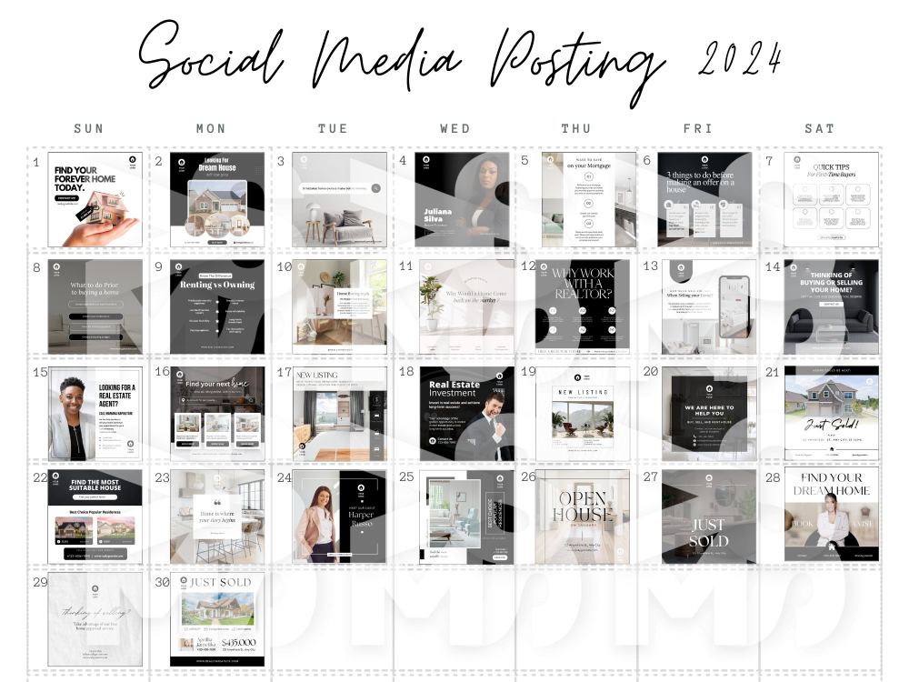 Real Estate Social Media Calendar Templates for Realtors Post Schedule