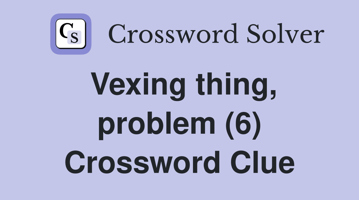 Vexing thing problem (6) Crossword Clue Answers Crossword Solver
