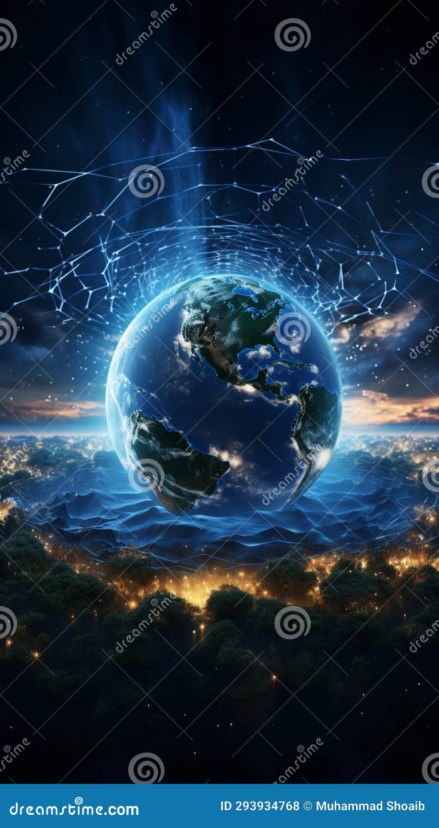 Premium AI Image Earth in a digital realm surrounded by a mesmerizing