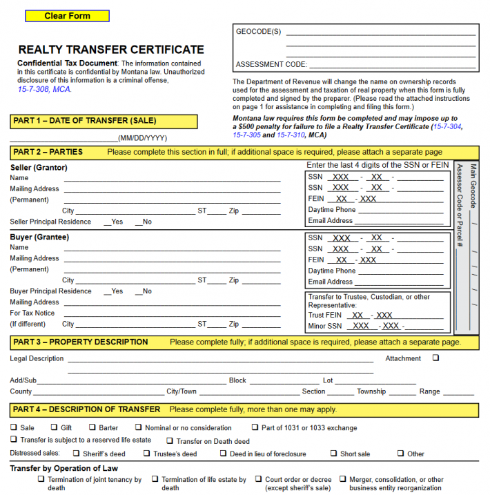 Montana Real Estate Transfer Tax: Montana Realty Transfer Certificate