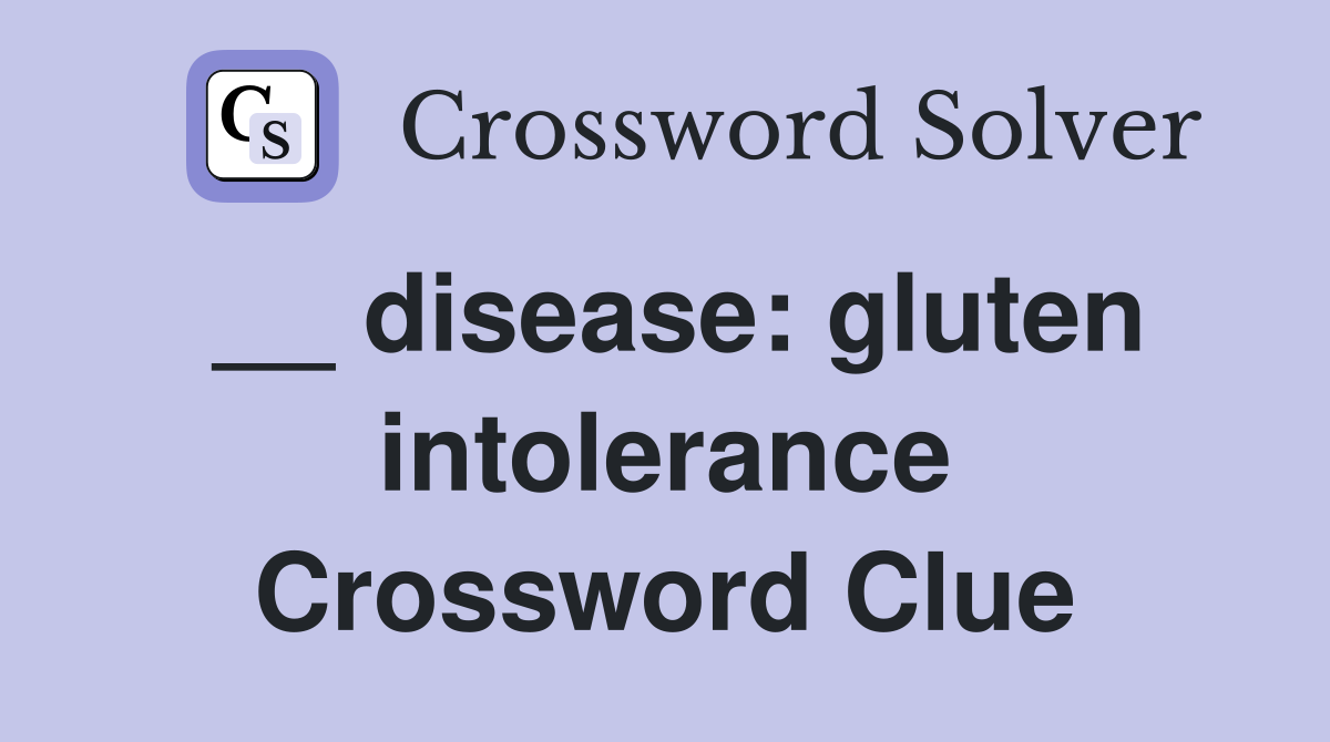 disease: gluten intolerance Crossword Clue Answers Crossword Solver