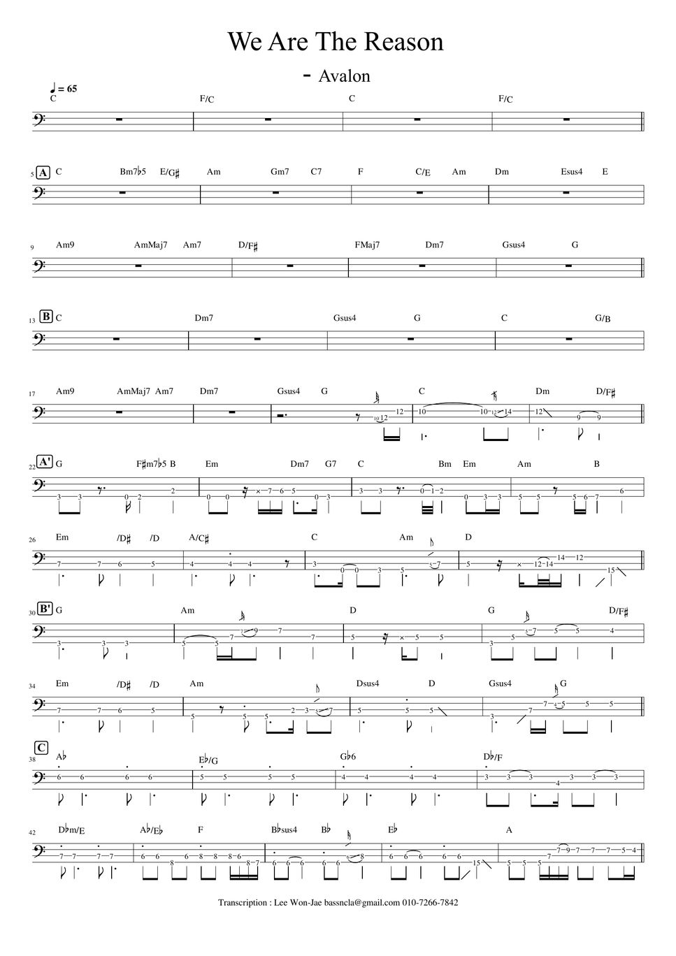 Avalon We Are The Reason (베이스 악보입니다 ) Tabulatur 1staff by 이원재
