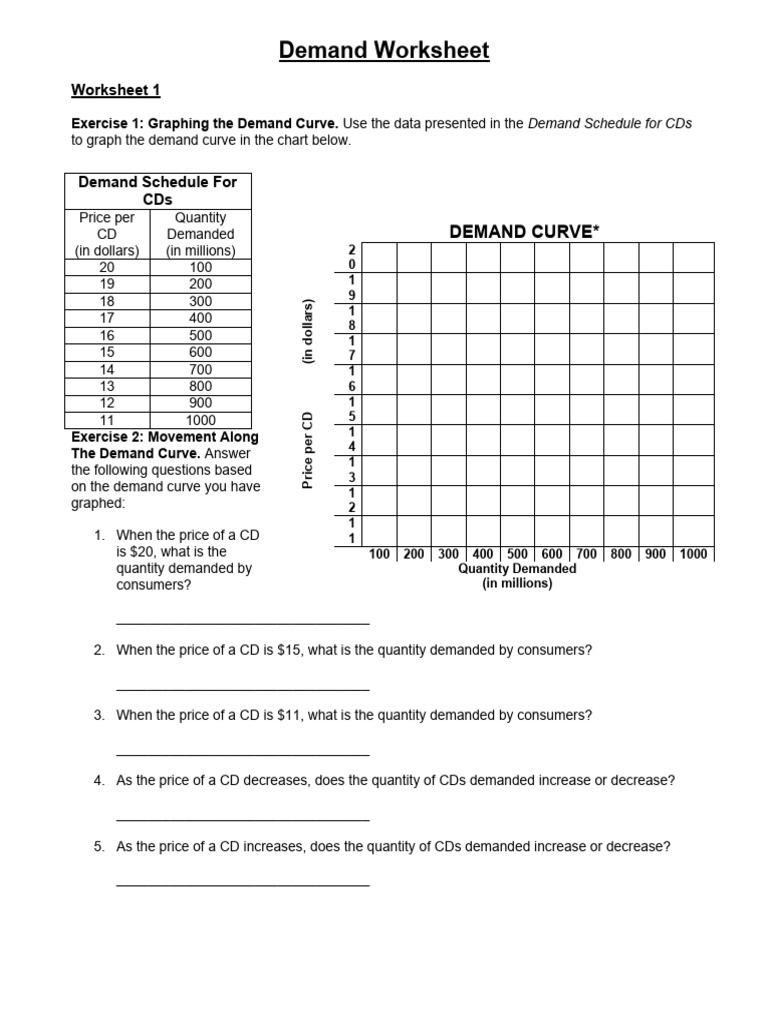 Demand Worksheet PDF Demand Curve Demand