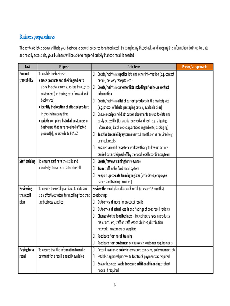 Food Recall Plan Template Final PDF Product (Business) Food Safety