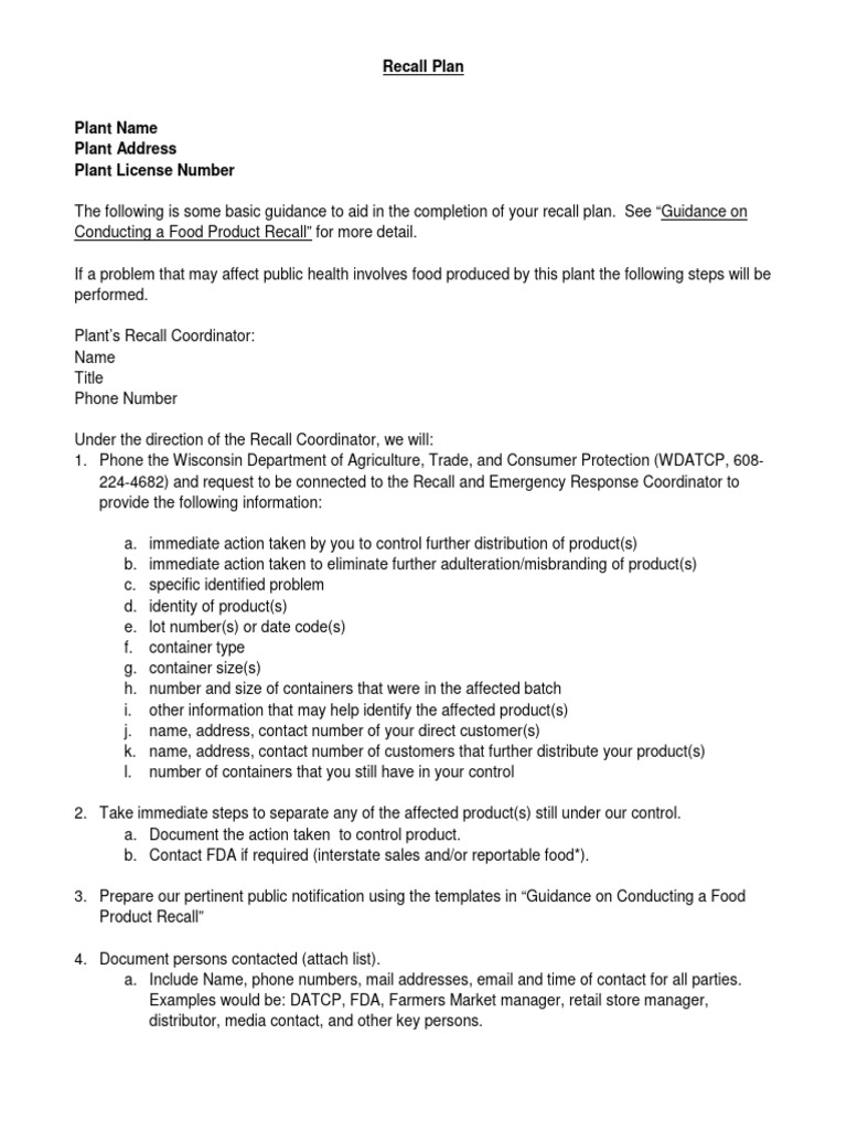 Here are some of the images for Recall Plan Template that we found in our website database.