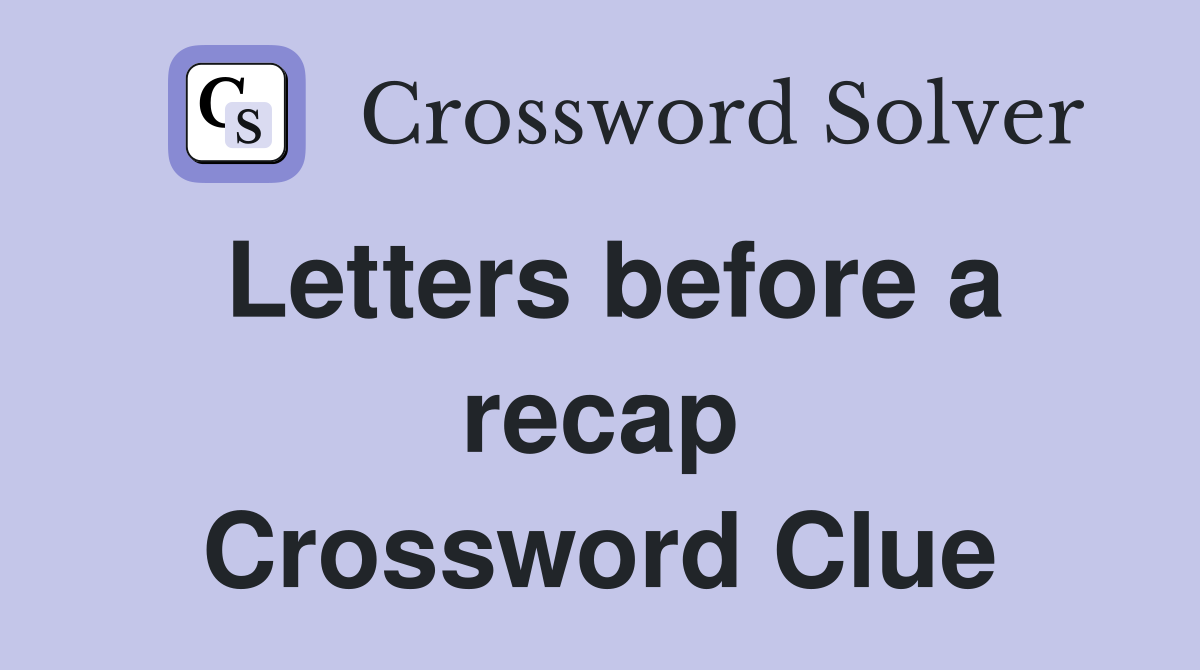 Letters before a recap Crossword Clue Answers Crossword Solver