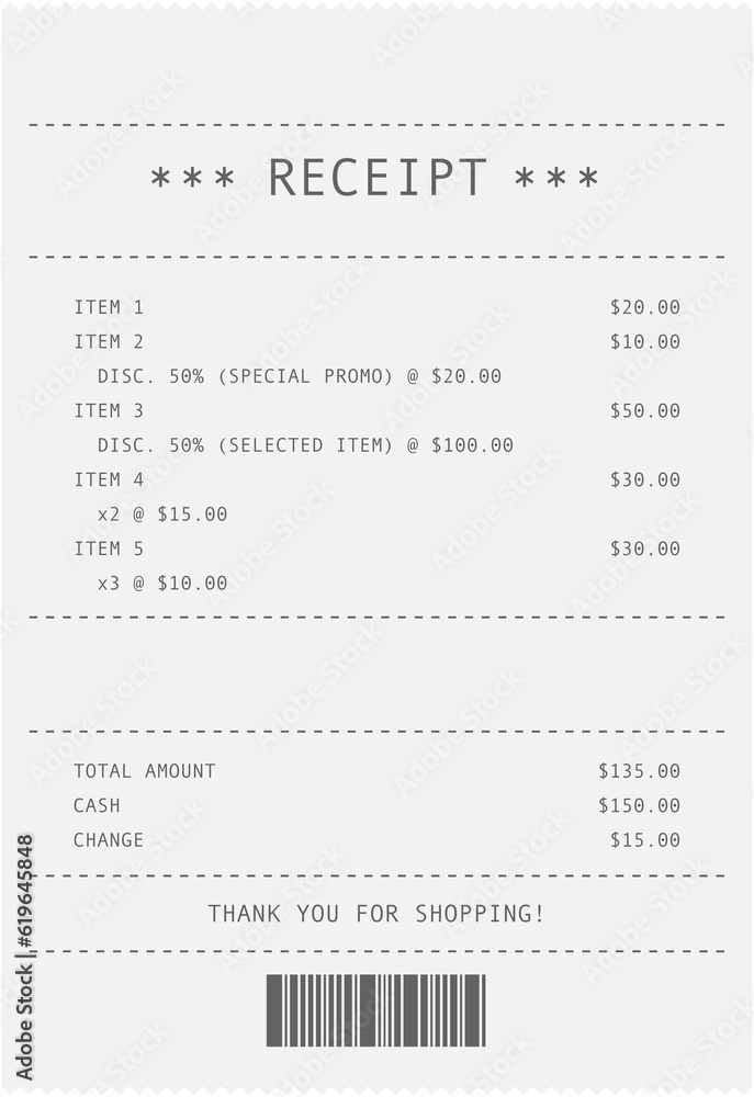 Receipt bill paper invoice receipt template Stock Vector Adobe Stock