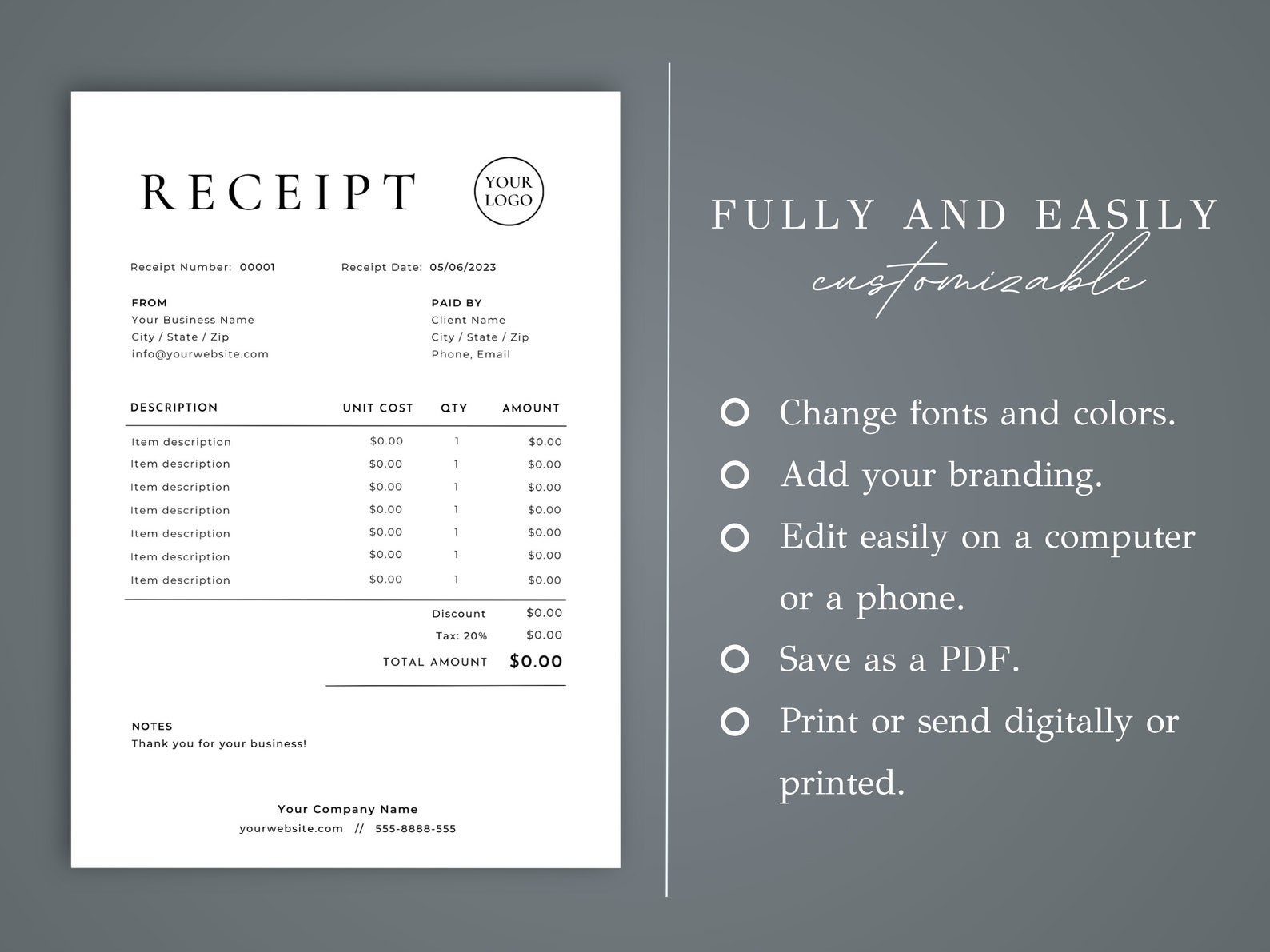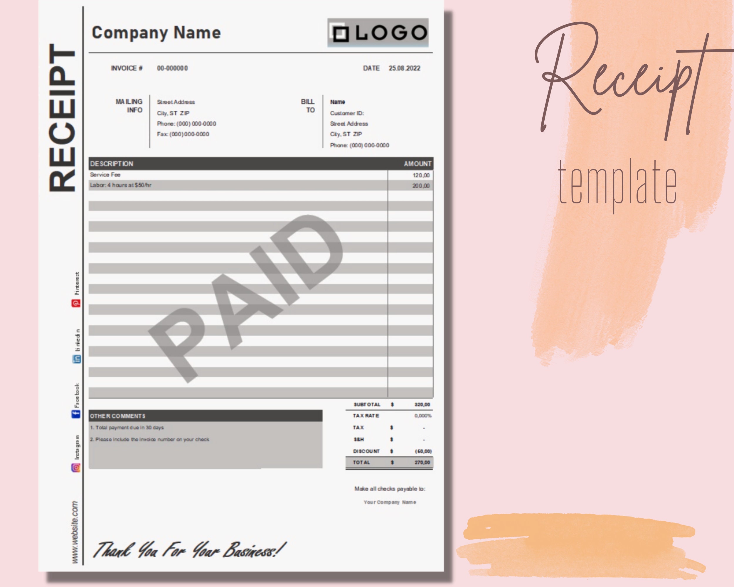 Receipt Template Google Sheets and Microsoft Excel Etsy