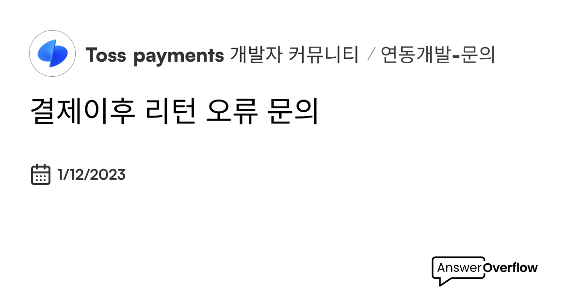 결제이후 리턴 오류 문의 Toss payments 개발자 커뮤니티