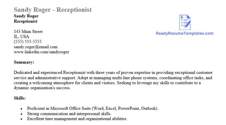 Receptionist Resume Sample Guide (Free Download)