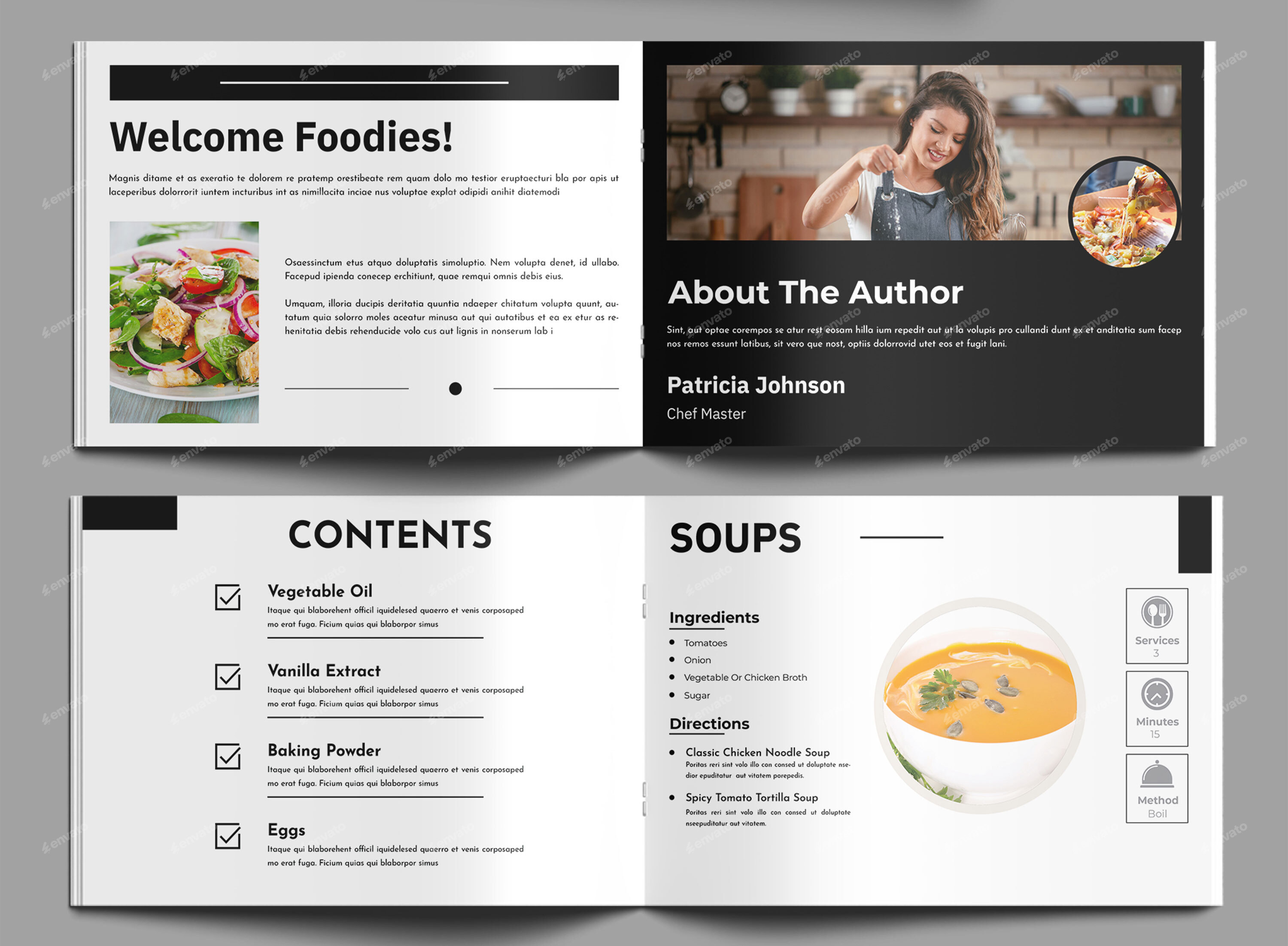 Recipe book layout template cookbook design food menu template